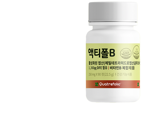 활성형 엽산이 포함된 제품에만 표기되어 있는 Quatrefolic ® 마크를 꼭 확인하세요.